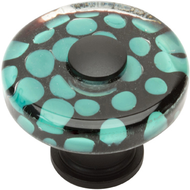 eleven: Emerald dream glass round knob, by Atlas Hardware, available at Henry Plumbing and Marc Christian Fine Cabinetry.
