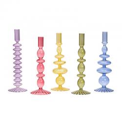 Hand-blown glass taper candlestick candle holders, available at Blue Dahlia Designs.