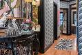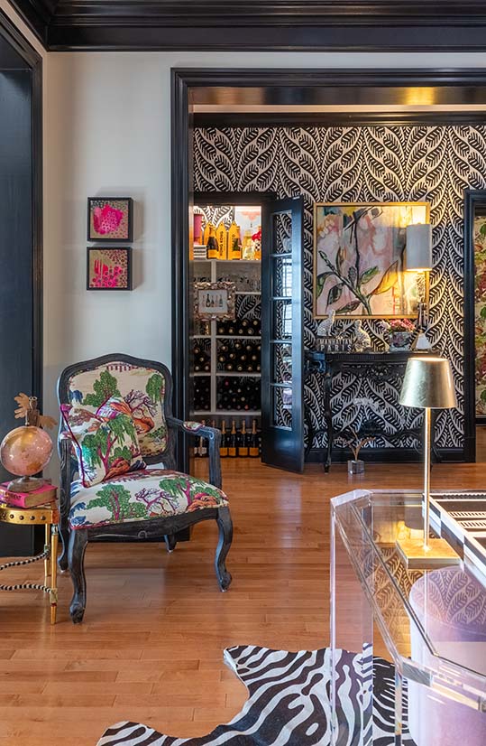 Adding another unexpected pop of personality is the hall closet turned champagne closet. “When you first walked into the condo, there were so many black doors and it just wasn’t welcoming,” Barbara mentions. “And there was a hall closet that didn’t serve a purpose. We decided to turn it into something a little more fun,” she laughs.