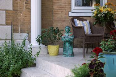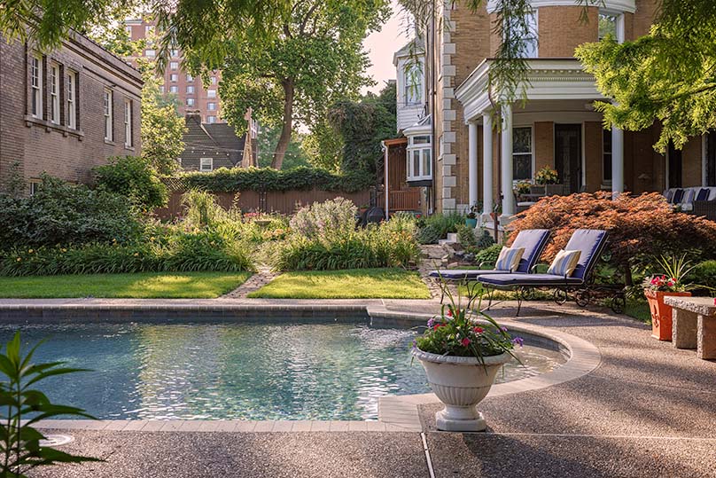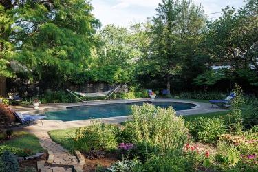 Brian and Jen continually share their garden with friends. “We love entertaining, and we are on the covered porch all the time,” says Brian, noting that they are active in their parish and friends often end up at the garden following parish social functions. The garden and pool also are a great place for Brian and Jen’s 13-year-old daughter and Brian’s 23-year-old son to hang out with friends.
