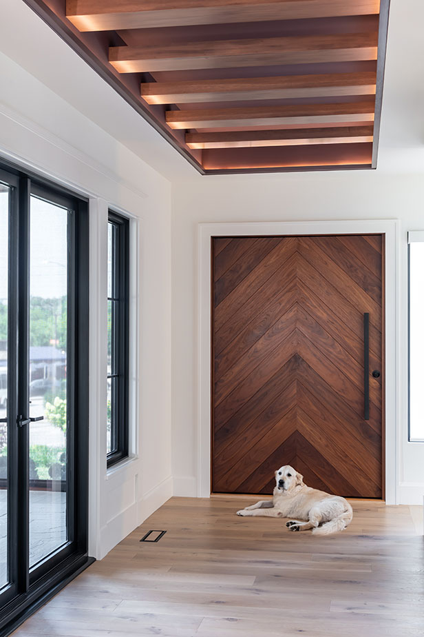 Creating an internally modern, yet “easy to live in” home was the goal, according to Maryann. They accomplished that by planning open, airy spaces with plenty of windows for natural light. Next came details that make solid use of heights to yield a functional, but copacetic and appealing, house.