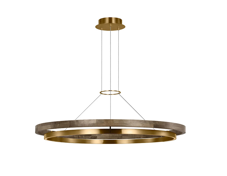 2. Ring chandeliers can be very large and make a great statement in high-ceilinged and lofted rooms. Grace 48” wide LED ring chandelier, available at Ferguson Home.