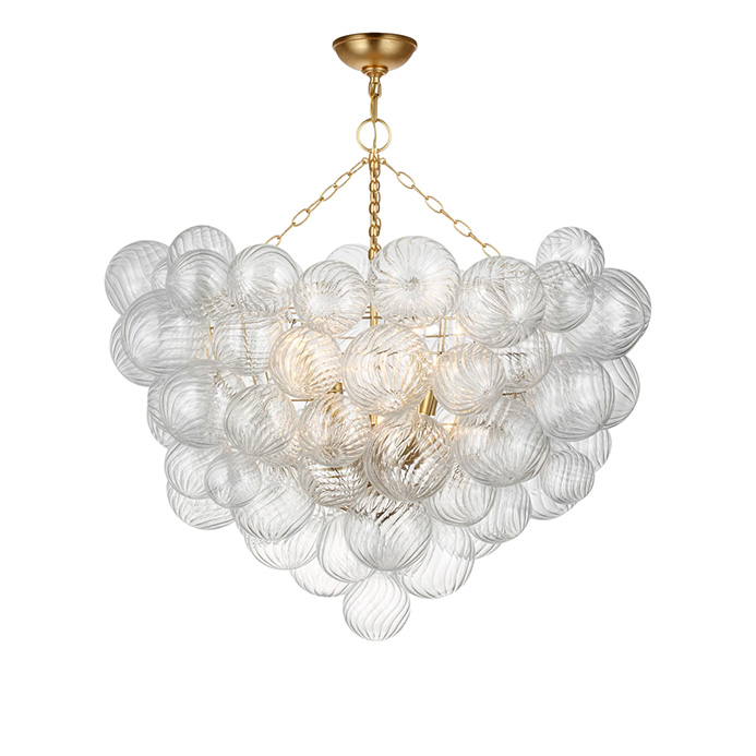 1. Cluster chandeliers consisting of spherical forms can be low hanging or higher mounted in grand bathrooms and above dining room tables. Talia large chandelier, available at Visual Comfort.