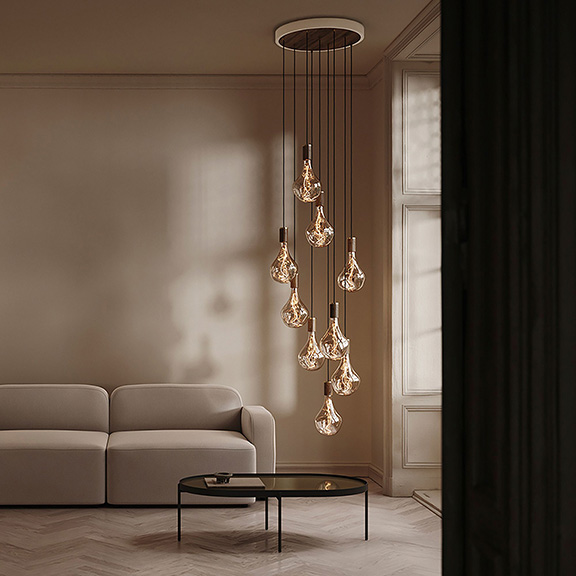 5. Sometimes chandeliers can even be made of pendants! These use clustered minimalistic bulbs to create a layered and directional body. Tala 9-light chandelier with Voroni II bulb, availavle at West Elm.