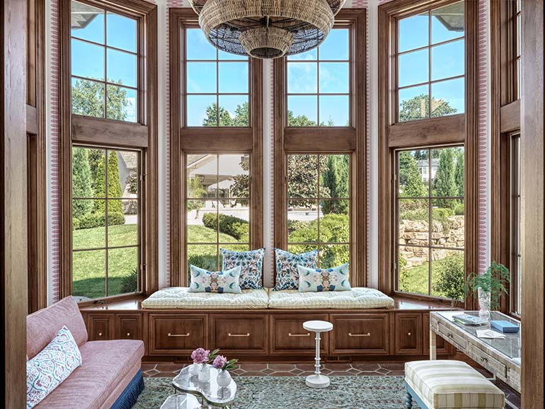 Factoring in the flow of one room into the next, Abner was challenged to ensure that the design was appealing from different vantage points. Whether standing in the sunroom or the great room, each space needed to be visually appealing. It was a large area to undertake, though Abner was confident to make each room feel connected yet distinct, both welcoming and cozy.