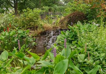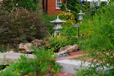 Share he does! With a Kirkwood home that borders a public walkway to a local elementary school, passersby have a full view of both the front and back yards. With a heavy emphasis on native plants and filled with water features that bring the splash of waterfalls and bubbling streams to the entire area, the landscape provides natural sounds that drown out street noise and offers a haven for wildlife.
