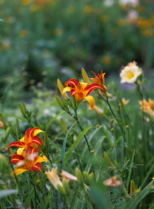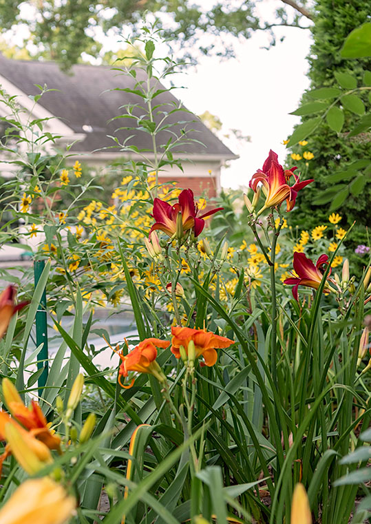 She has always loved daylilies due to the tremendous variety of brilliant colors created by the many different hybridizers. “Over time they seem to have created all the colors in the world,” she says. While living in Town & Country, she recalls a constant battle with the deer nibbling her plants. “I would get up at 4 a.m. to see if the deer were eating my daylilies,” she recalls.