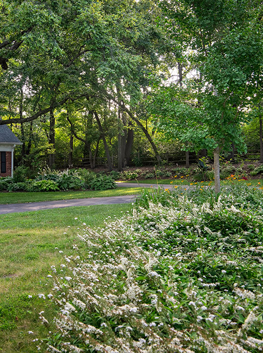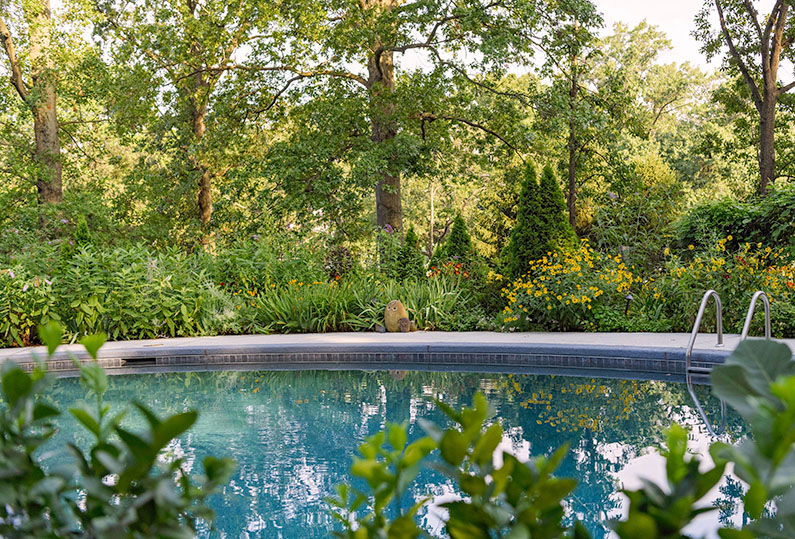 She believes the leaf cover and seed heads kept on her plants over the winter help attract birds and beneficial insects to her garden. To keep the birds happy, she offers up a spa-like heated bird bath that has enticed elusive bluebirds to her garden. In summer, hundreds of fireflies flicker throughout the landscape. “I’m fair and I can’t take a lot of sun,” she explains, “so I like to swim at night. I can see all the fireflies and I also can see bats that are attracted by the pool lights. The bats aren’t scary because they don’t swoop that low.”