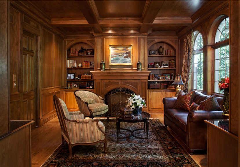 Purchased three years ago, the 12,000-plus-square-foot multi-level was built in 1996 and is surrounded by magnificent grounds that the new owners describe as “like a park, incredibly peaceful and quiet.” The original home, however, was decidedly formal in style, and the couple hoped to create an environment that was “less traditional, more comfortable and livable.” What they envisioned was a relaxing retreat for their soon-to-be-blended families and a great place for entertaining.