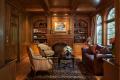 One learns to expect the unexpected when touring this fashionable residence. Case in point, in the main-floor privacy wing, the husband’s personal study features crocodile-embossed leather plank flooring and sand-textured walls that have been hand-painted and glazed. In the sumptuous master suite, plush furnishings and soft hues evoke tranquility, and – a subtle alteration – the fireplace mantel was lowered, de-emphasizing the scale of the bedroom.