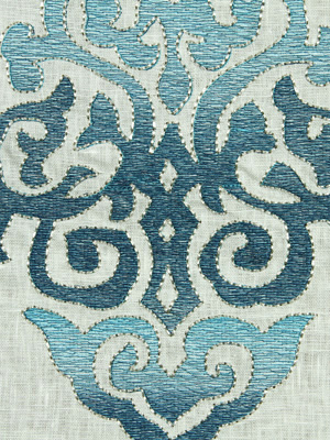 four: Scrolling art in aquarmarine, by Robert Allen, from LuLu Belles Fabrics.