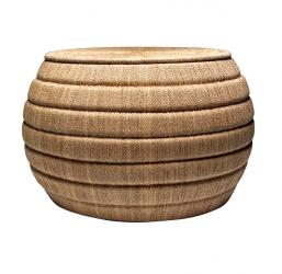“The tightly woven texture of this piece creates an organic feel. The top lifts off for storage of your favorite throws. Pairing this in a grouping adds seating options and flexibility. This is wonderful to give a casual, cozy feel with a nod to nature!” TJ Rinn, Savvy Surrounding Style.