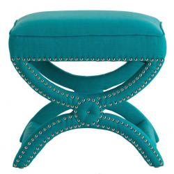 “This fun ottoman is from Arteriors. We are in love with the vivid colors available, the nail head trim details and its perfect size!” Tamsin Mascetti, Allied ASID, Tamsin Design Group.