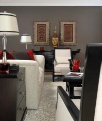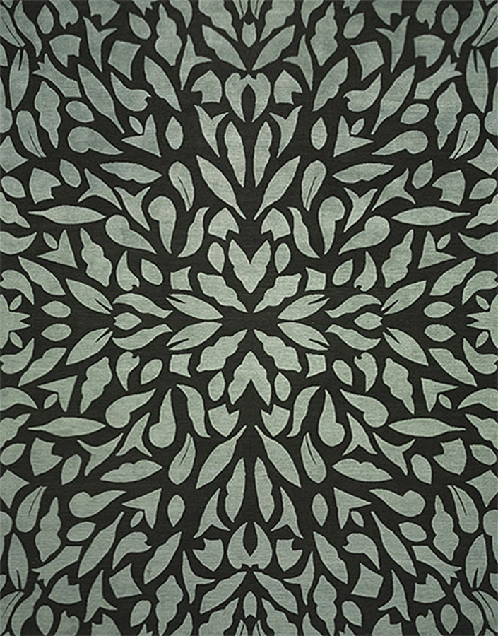 “The tone-on-tone area rug in this arabesque design is tufted wool with a raised sheer design made of silk. It creates a nice backdrop to any furnishing and color schemes and adds a touch of sophistication” -Jane Ganz, ASID, Directions in Design, Inc.