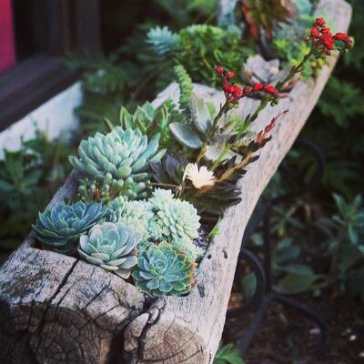 “If you have an old bird bath, unusual pot or even an interesting log or piece of driftwood, succulents can be added for an unusual garden piece of art. This log is filled with varieties of Echeveria elegans, Aloe, Gastrolea Wonder and Sempervivum. Succulent planters require a sunny area and do not need too much water. Fertilize about every six months with a 20/20/20 fertilizer and enjoy these relatively care free plants in your landscape or in unique containers.” David Sherwood, Sherwood’s Forest.