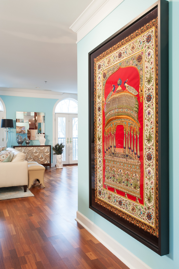 With its soaring ceilings, arched windows, elaborate woodwork and three balconies, the Abdulraufs’ newly acquired home required no structural changes, but the interior décor presented a “color issue.” “We’d already decided to purchase all-new furnishings, and we wanted something contemporary, glamorous, bright and fun – a home that reflects our tastes,” Anne Marie explains.