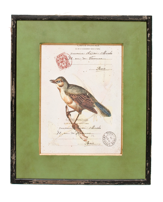 seven: Framed bird print in green, available at Three French Hens.