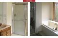 Free-standing showers replace the bathtubs as a way to free up space for larger or double vanities and more storage.