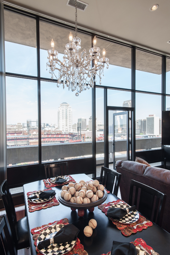 What makes this unit every sports fan’s dream is the unbelievable view Matt has from his balcony. Sitting outside on his patio enjoying a frosty cold one, Matt and guests can see right into Busch Stadium. “You can see the crowd, hear the crowd as well as the fireworks,” Matt says. “I probably spend eight months out of the year out here.” It’s as if you are at the game without actually purchasing a ticket. For this reason, Matt says family and friends constantly are knocking on the door on game days to kick back and enjoy the Cardinals action from the comforts of Matt’s home.