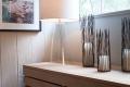 Above the cabinet, a three-dimensional work by Shalom Gabay reflects Michael’s love of fine art and his penchant for blending contemporary and traditional styles. “Every piece in this house was purchased separately and has a story,” he explains. “Some were acquired during my travels; others are vintage classics. Basically, I wanted to create a warm, lived-in environment where people feel comfortable putting their feet up.”