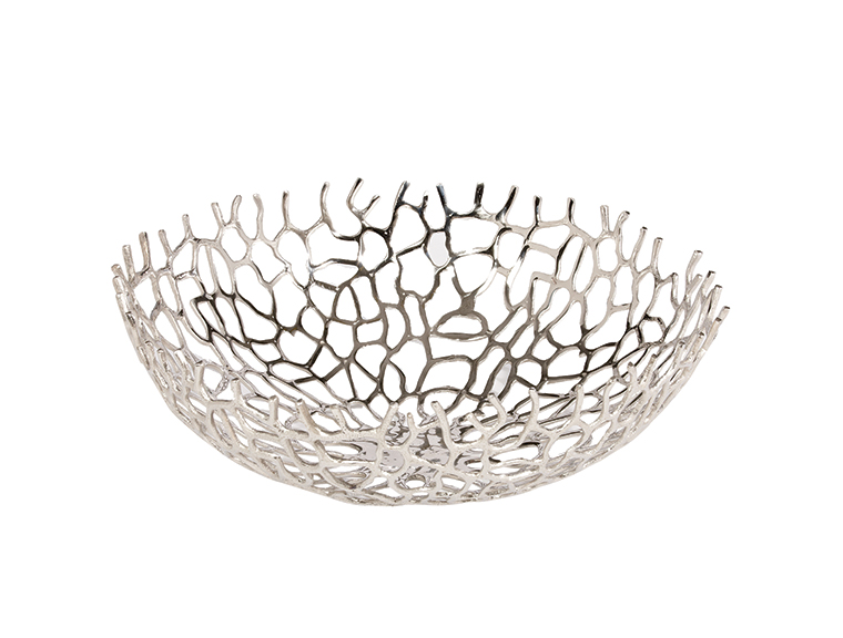 thirteen: Nickel round coral bowl, available at Ethan Allen.