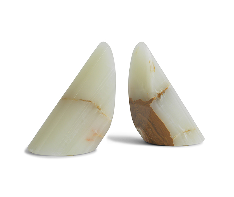 three: Light-green onyx bookends, available at Mitchell Gold + Bob Williams.