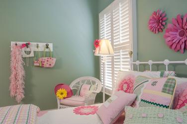 On the upper level, Karen’s flair for color – and her sense of humor – are evident in the guest suites, which most frequently are occupied by the grandkids who range in age from 10 to 9 months. With an impish smile, she identifies each bedroom and its adjacent bath by the décor.