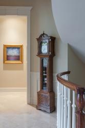 Unruffled by SLHL’s intrusion on her hectic schedule, Karen explained that she already had specific plans for the home’s interior décor when the architectural plans were still on the drawing boards nine years ago. The predominant color scheme throughout the main level would be red, green and gold, incorporating a number of the couple’s previously owned furnishings. The kitchen would be black and white, with distressed white cabinetry, and new acquisitions would be skillfully upholstered in hand-selected fabrics.