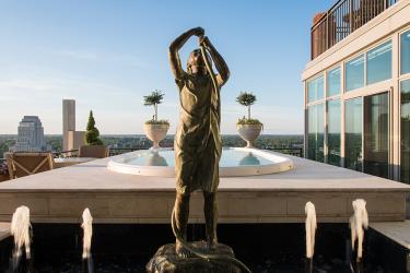 Working with Nathan Bavolek of Opus and longtime St. Louis builder Vern Hackett, he custom designed a unique L-shaped floorplan that allows for panoramic views of the city in every direction. The finished layout provides nearly 4,000 square feet of interior space and another 1,600 square feet of outdoor living space, including three balconies and the massive terrace.