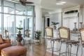 In the theater room, the marble-topped, curved bar is accessible from both sides, another of the owner’s specifications. Equipped with a wine cooler, refrigerator and icemaker, the bar provides easy beverage service for guests viewing the 65-inch screen from two gloriously comfortable massage chairs. Adding a splash of color to this fabulous entertainment space are a vivid circular canvas and two additional paintings by Brazilian artist Romero Britto.
