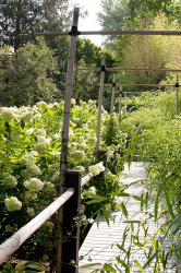 Other plants that are signatures of her garden include the dawn redwoods at the back of the garden that were one of the first things planted; a wide variety of hydrangeas, particularly heavy-flowering, dwarf Bobo, and the prairie dropseed that makes up her ocean.