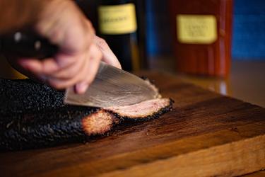 Brisket. Depending on the day of the week, Riley smokes from 10 - 30 beef briskets. They go into the smoker at 2 or 3 p.m. and cook all night. The class won’t be able to experience the long cooking process, of course, but Riley will show how to trim the brisket and make and apply the rub – and offer samples of the finished product.