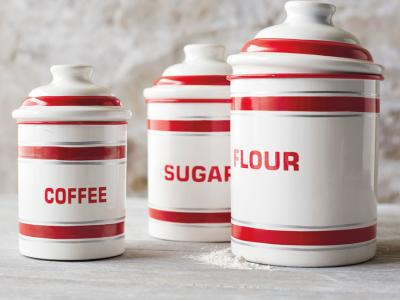 Storing pantry staples like flour and sugar in decorative canisters is a great way to complement the style of your kitchen and add an extra flare to your countertops.