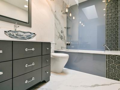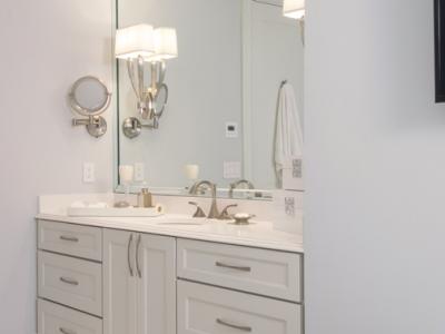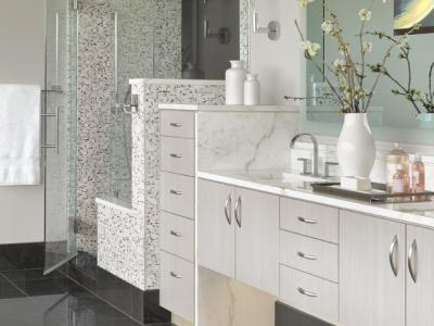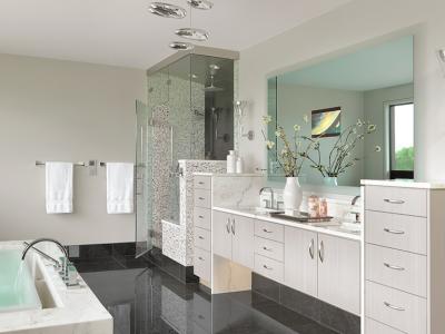 At approximately 420 square feet, the large master bathroom presented a challenge in working within such a large space. It was important to designers Accent on Cabinets and Slavin Construction to...
