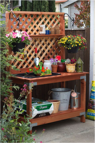 Gardening is more than simply enjoying the views of beautiful flora, taking in luscious greenery or munching on fresh-grown backyard veggies. Any avid gardener will tell you that when it comes to their home gardens, there is more to it than meets the eye. Gardening is a lifestyle driven by hard work, excessive amounts of planning and not to mention the art of getting down and dirty. Whether it’s replanting, soil amending, weeding or mulching, every gardener needs a functional workstation that will allow him or her to work swiftly while also staying organized.  Peep at these practical, fun and trendy gardening workstations for a little inspiration!