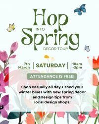 Shop casually all day + shed your winter blues with new spring decor and design tips from local design shops.
