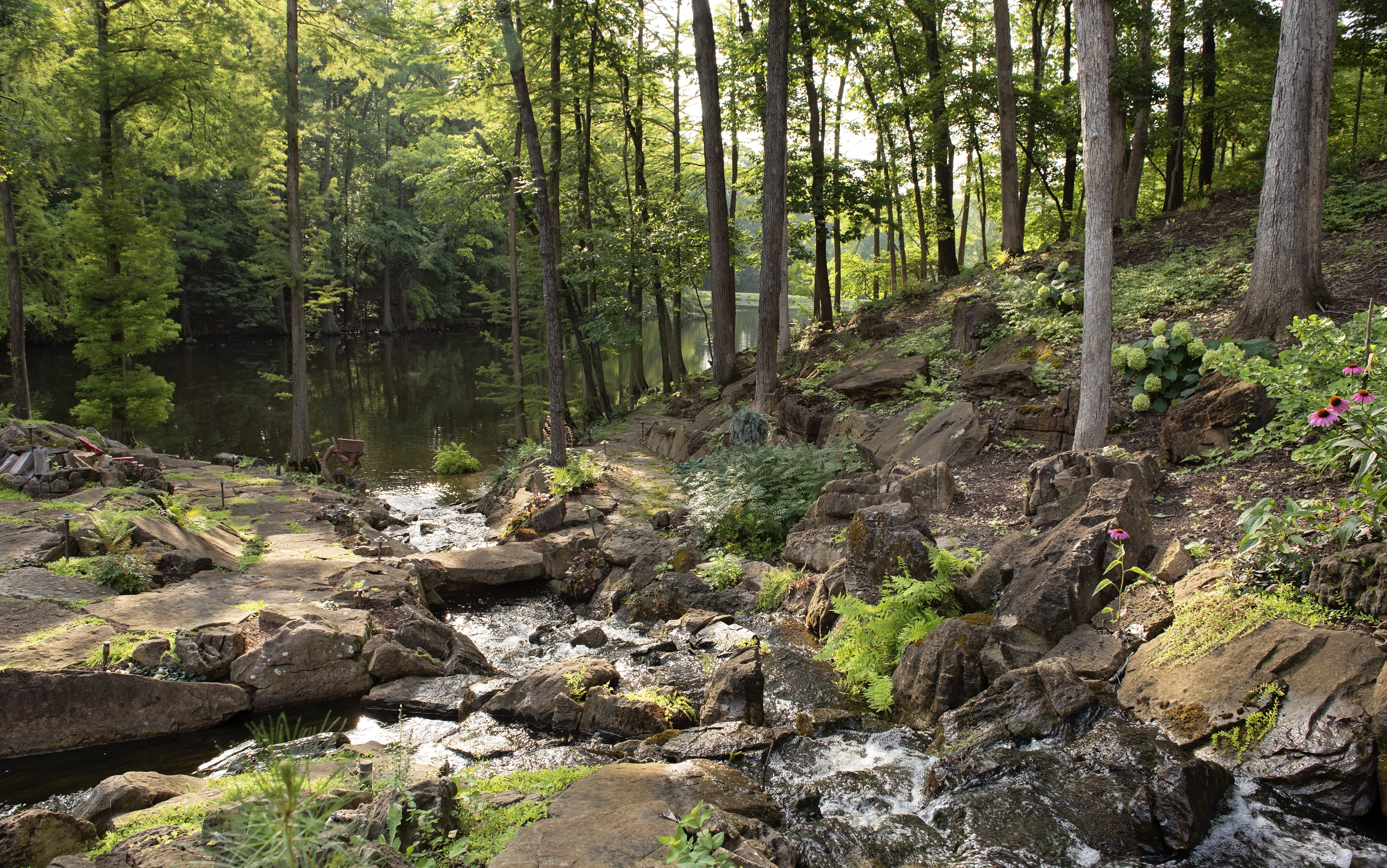Growing up on property bordering the nearly 6500-acre Cuivre River State Park, the young Bauers explored the secrets of the woods from the mossy creek bottoms to the oak covered hilltops. This powerful experience was essential for the creation of and natural aspect to Bauer Falls. It was created with the idea of bringing as much nature to people as possible. During their time spent in the hills and woods, the lay of the land; the way, over the centuries, rocks and boulders tumbled into place, and the ebb and flow of the streams and creeks became embedded in their minds. They have used that natural institutional memory to transform the backyards and gardens of their customers.