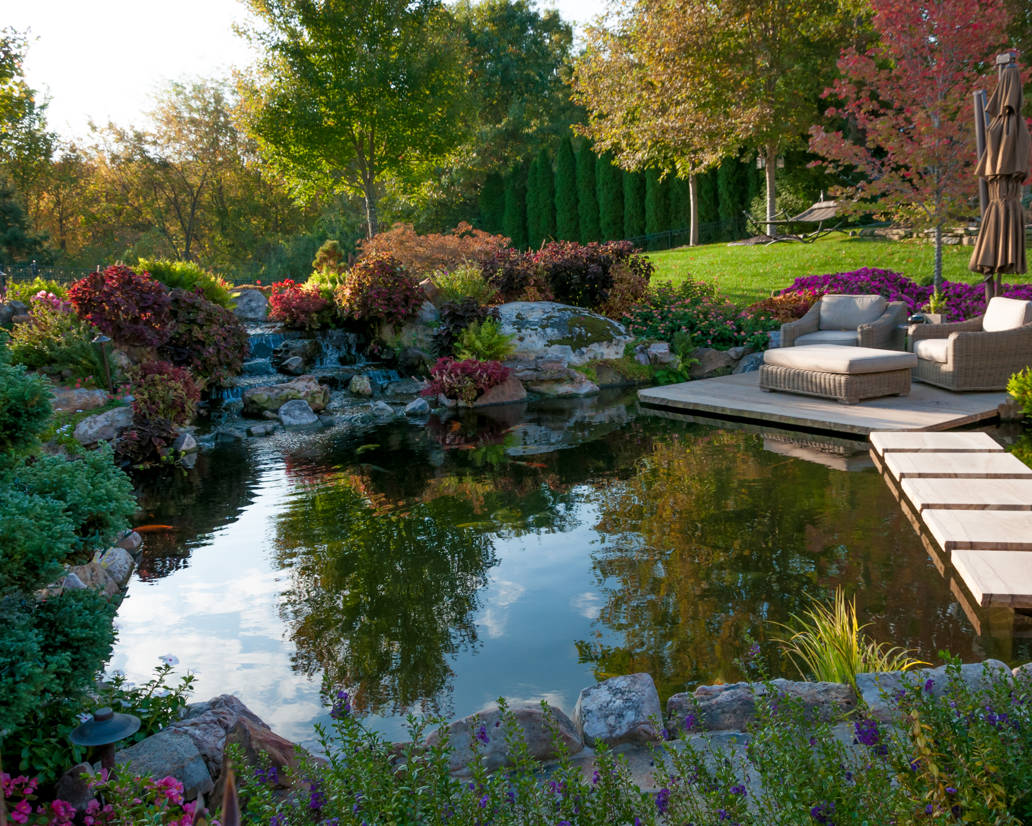 The Bauer brothers' lifelong passion for nature led them into an exclusive artistry designing and creating natural luxury waterfalls and koi ponds. They won SLHL Garden of the Year for creating an elite waterfall featuring nearly 1000 tons (37 semi loads) of natural stone boulders that pumps 48,000 gallons of water per hour. While stones make up pathways, steps and landings are made flat and others are boulder-like quality, both to anchor hillsides during erosion-creating rains and to mimic the Rocky Mountain landscape homeowners love.