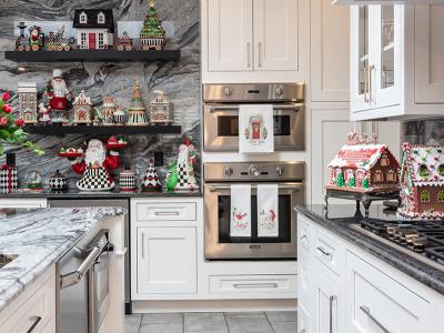 During the Christmas season, holiday tableware will adorn the table at Ruth and Thomas Brouster’s home in Ladue as they host holiday events for their family.