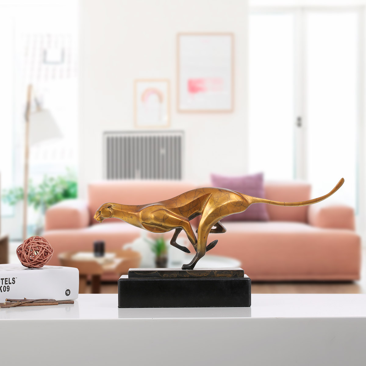 Now, here’s a feminine tone that's not pink: bronze. Incorporating this metal into your home is a sure way to add a touch of old-world glamour. The distinction of bronze versus brass has become somewhat confused in the modern era, but for our purposes, we want to avoid the more yellow brass and opt for the more brown bronze. Not only does a darker bronze thrive in neutral spaces, but it looks more expensive. Also, it is remarkably easy to integrate; just bring in bronze accent pieces to adorn your space. For example, this sleek leopard sculpture would be a powerful addition to any room.