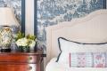 Karen had the existing panel molding painted in the Smoky Blue, and installed a harmonizing chinoiserie wallpaper within the panels.  “The wallpaper complemented the rug, and it complemented the age of the house,” Karen says.
