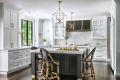 The ‘before’ kitchen in this modern Victorian-style home built in 1988 included dated, dark-stained cabinets, black countertops, inadequate lighting and bulky soffits. Christine says those soffits were removed, and functional lighting was generated with decorative pendants and sconces.